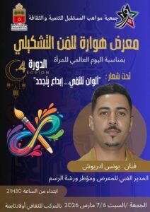 تنظم جمعية مواهب المستقبل للثقافة والفن معرض هوارة للفن التشكيلي في نسخته الرابعة تحت شعار: “ألوان تلتقي.. إبداع يتجدد”، وذلك يومي 6 و7 مارس 2026 بالمركب الثقافي أولاد تايمة. يتزامن هذا الحدث الفني مع اليوم العالمي للمرأة، مما أضفى عليه بعداً رمزياً يعكس حضور المرأة في الساحة الثقافية والفنية. وفي هذا السياق، تمت برمجة ندوة […]