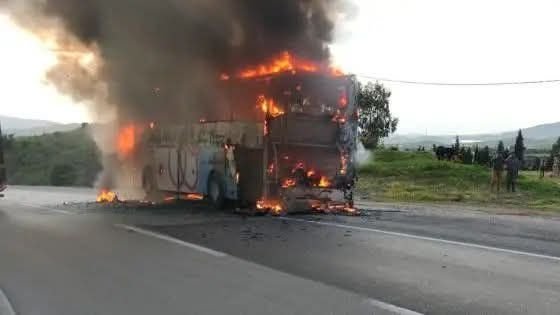وحسب إفادات شهود عيان، اندلع الحريق بشكل مفاجئ داخل الحافلة قبل أن تمتد ألسنة اللهب بسرعة إلى مختلف أجزائها، ما أدى إلى احتراقها بالكامل في وقت وجيز، وسط حالة من الهلع في صفوف المسافرين الذين اضطروا إلى مغادرتها بسرعة حفاظاً على سلامتهم.