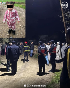 تم مساء اليوم الأربعاء11 مارس 2026, العثور على جثـة الطفلة “سندس” بأحد الأودية، بعد اختفائها لازيد من 13 يوم وسط عمليات بحث مكثفة من طرف السلطات و العديد من المتطوعين من أبناء المنطقة و غيرهم.
